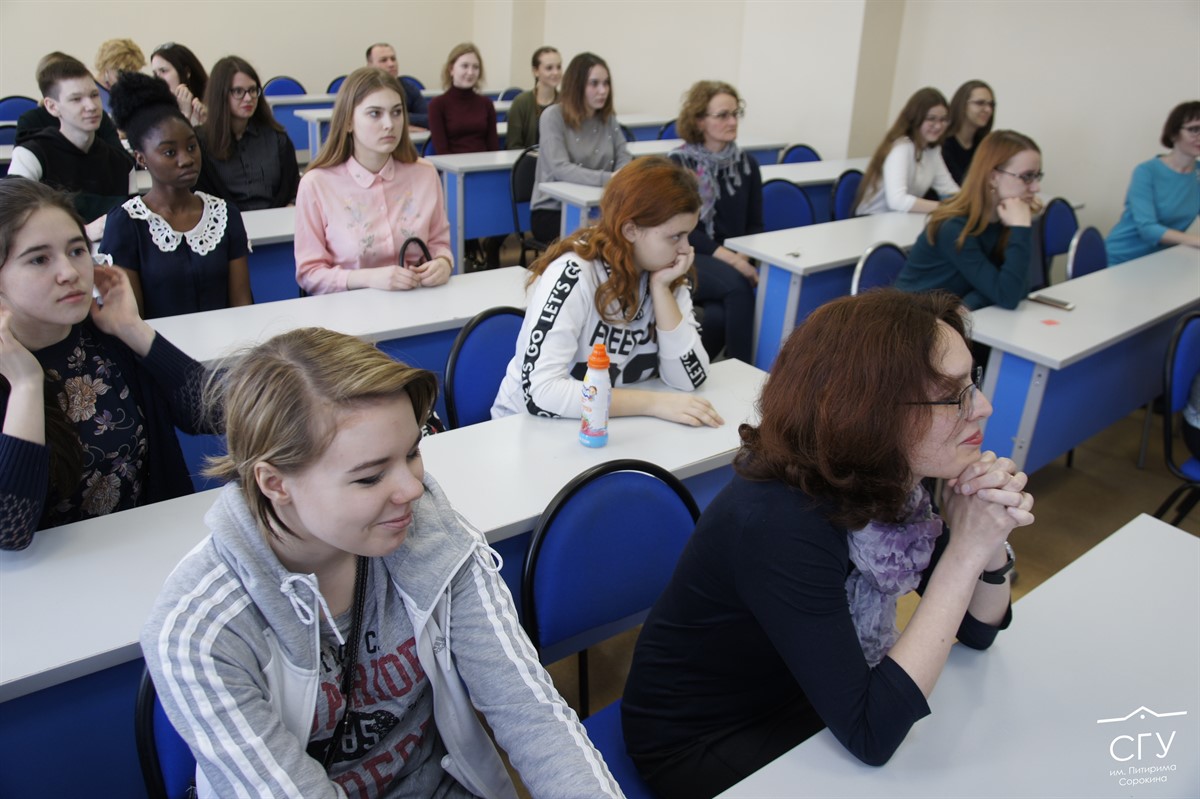 Затем слово было передано обучающимся института. Так, студентки 4 курса Дарья Черкасова и Кристина Шмыгора рассказали абитуриентам о программах международного студенческого обмена и поделились впечатлениями о своей полугодовой стажировке в Швеции по программе «North to North». Со школьниками пообщалась студентка из Замбии Диана Касвая, изучающая русский язык в СГУ им. Питирима Сорокина. Ее выступление встретили улыбками и задали много вопросов.