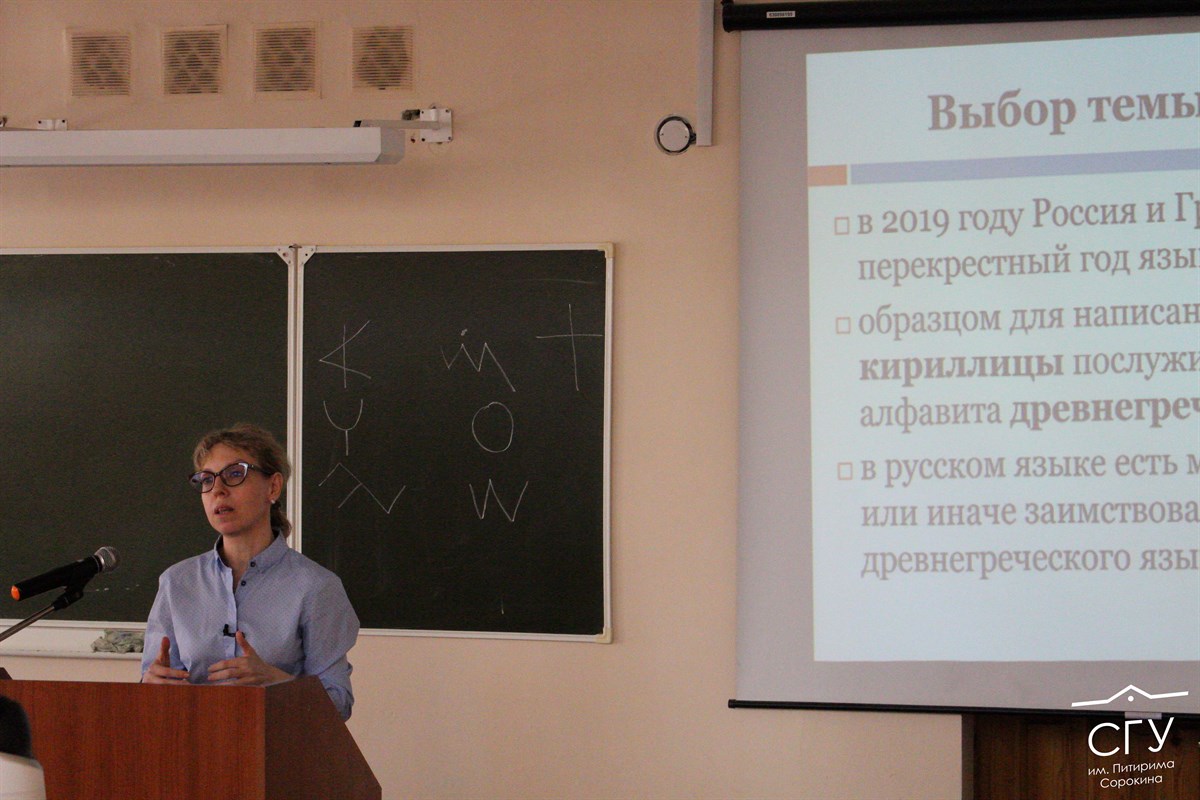 29 мая на базе Сыктывкарского государственного университета имени Питирима Сорокина прошла открытая лекция по русской филологии «Мы и сегодня немного пишем и говорим по-древнегречески» в рамках Фестиваля славянской письменности и культуры. Лектором выступила кандидат филологических наук Юлия Ильина.