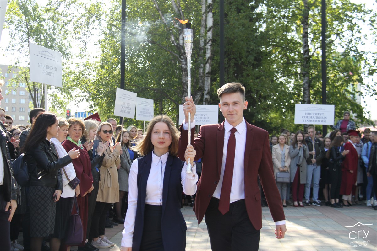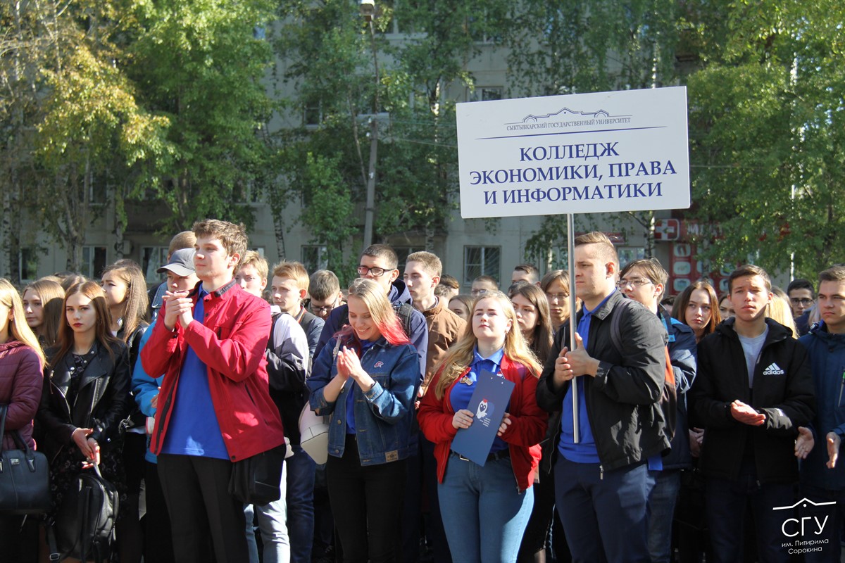 В первый день нового учебного года СГУ им. Питирима Сорокина приветствовал студентов. На крыльце главного корпуса университета собрались представители всех институтов, а также первые лица республики и города, чтобы поздравить прибывших на учебу первокурсников.