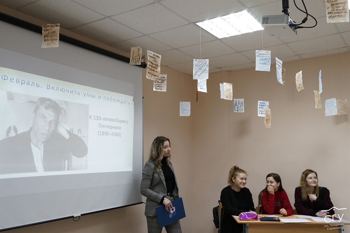 Интеллектуальная игра к 130-летию Бориса Пастернака состоялась 17 февраля в Институте гуманитарных наук СГУ им. Питирима Сорокина. Активное участие в мероприятии приняли студенты первого курса филологического направления.