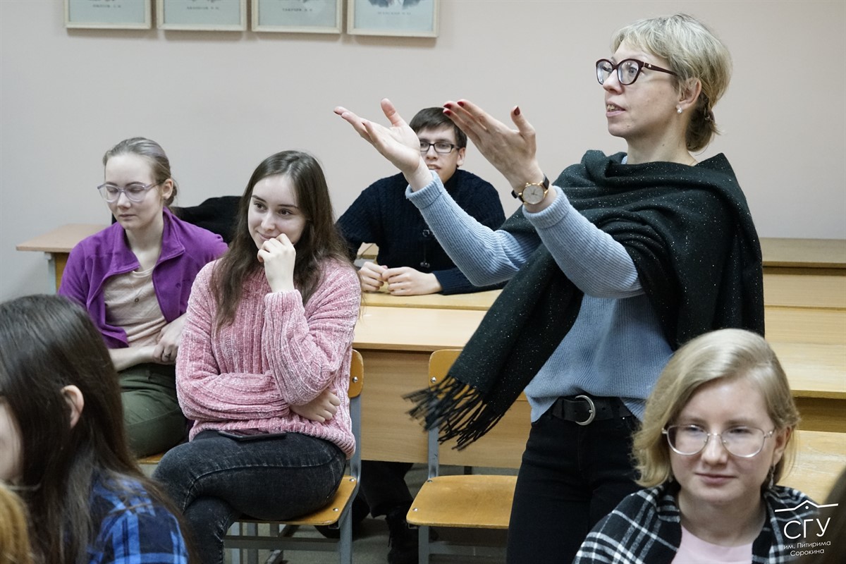 Пока студенты делились на команды, к игре присоединились и преподаватели: доцент кафедры истории России и зарубежных стран Федор Иванов и доцент кафедры связей с общественностью и рекламы Владимир Филимонов. Понаблюдать за мероприятием пришли и гости — студенты и преподаватели СГУ им. Питирима Сорокина.